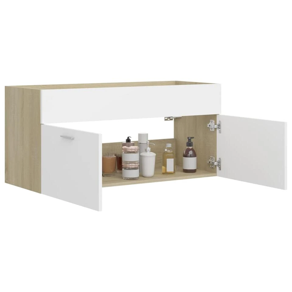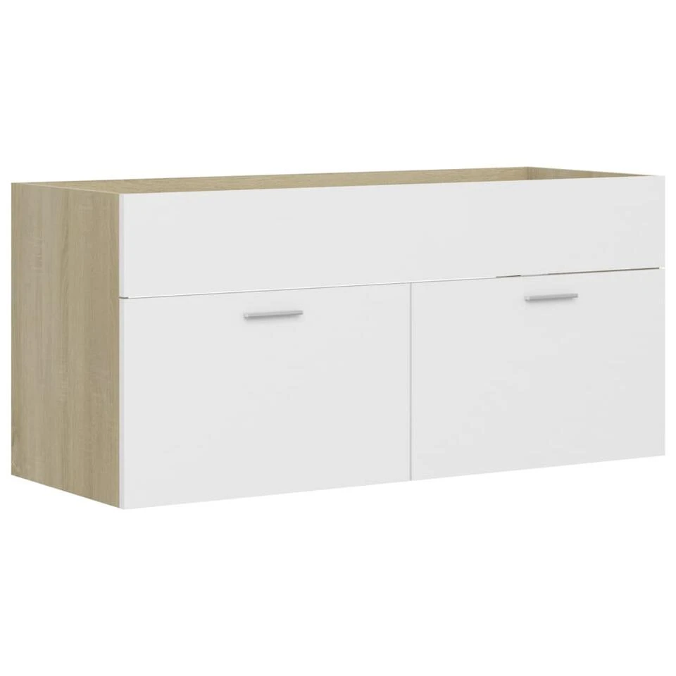 Deze kast is gemaakt van spaanplaat, waardoor hij stevig en stabiel is. De opbergkast heeft 1 vak en 2 deuren en biedt voldoende ruimte om spullen in je badkamer op te bergen. Het blad is ideaal voor het plaatsen van een wastafel. De kast is gemakkelijk schoon te maken met een vochtige doek.