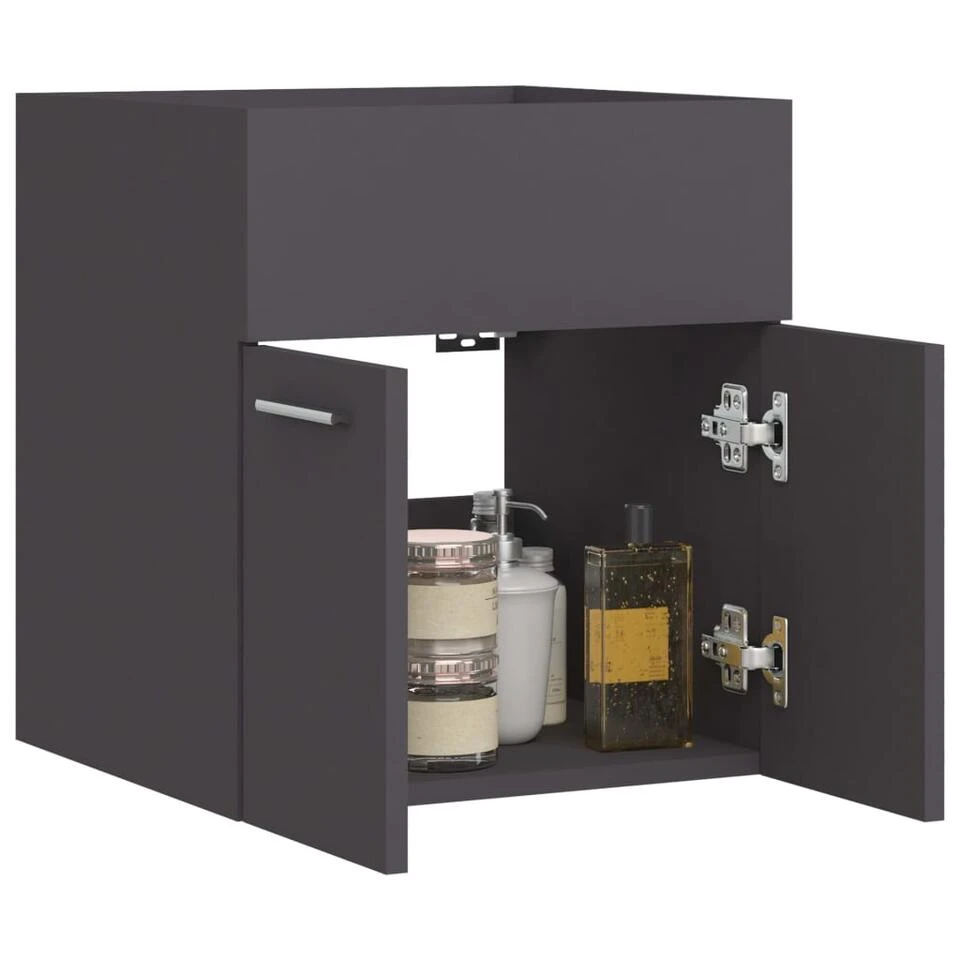 Deze kast is gemaakt van spaanplaat, waardoor hij stevig en stabiel is. De opbergkast heeft 1 vak en 2 deuren en biedt voldoende ruimte om spullen in je badkamer op te bergen. Het blad is ideaal voor het plaatsen van een wastafel. De kast is gemakkelijk schoon te maken met een vochtige doek.