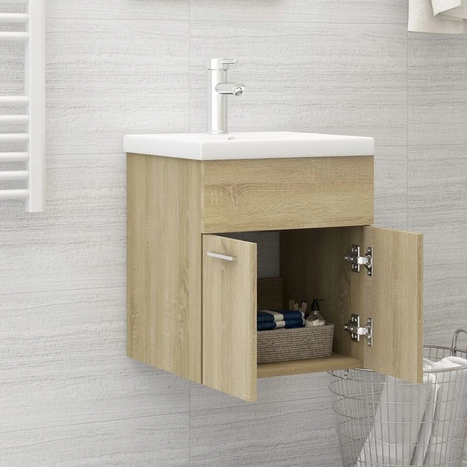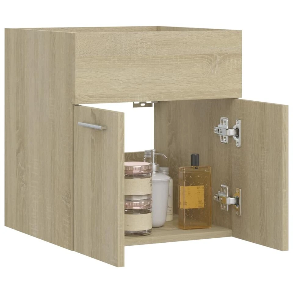 Deze kast is gemaakt van spaanplaat, waardoor hij stevig en stabiel is. De opbergkast heeft 1 vak en 2 deuren en biedt voldoende ruimte om spullen in je badkamer op te bergen. Het blad is ideaal voor het plaatsen van een wastafel. De kast is gemakkelijk schoon te maken met een vochtige doek.