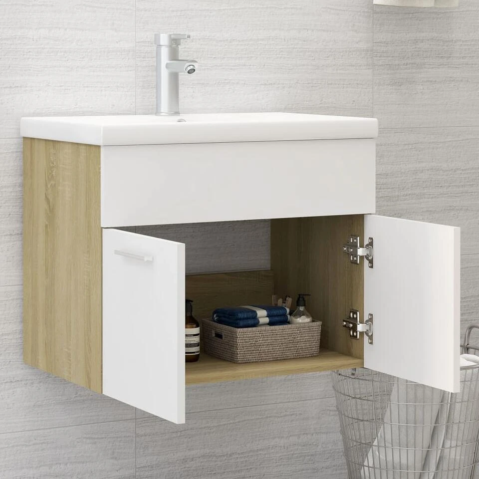 Deze kast is gemaakt van spaanplaat, waardoor hij stevig en stabiel is. De opbergkast heeft 1 vak en 2 deuren en biedt voldoende ruimte om spullen in je badkamer op te bergen. Het blad is ideaal voor het plaatsen van een wastafel. De kast is gemakkelijk schoon te maken met een vochtige doek.