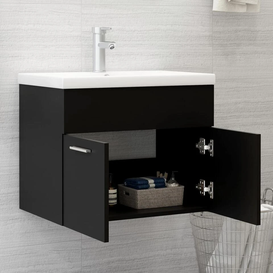 Deze kast is gemaakt van spaanplaat, waardoor hij stevig en stabiel is. De opbergkast heeft 1 vak en 2 deuren en biedt voldoende ruimte om spullen in je badkamer op te bergen. Het blad is ideaal voor het plaatsen van een wastafel. De kast is gemakkelijk schoon te maken met een vochtige doek.