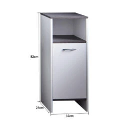 Deze kast is gemaakt van spaanplaat, waardoor hij stevig en stabiel is. De opbergkast heeft 1 vak en 2 deuren en biedt voldoende ruimte om spullen in je badkamer op te bergen. Het blad is ideaal voor het plaatsen van een wastafel. De kast is gemakkelijk schoon te maken met een vochtige doek.
