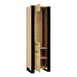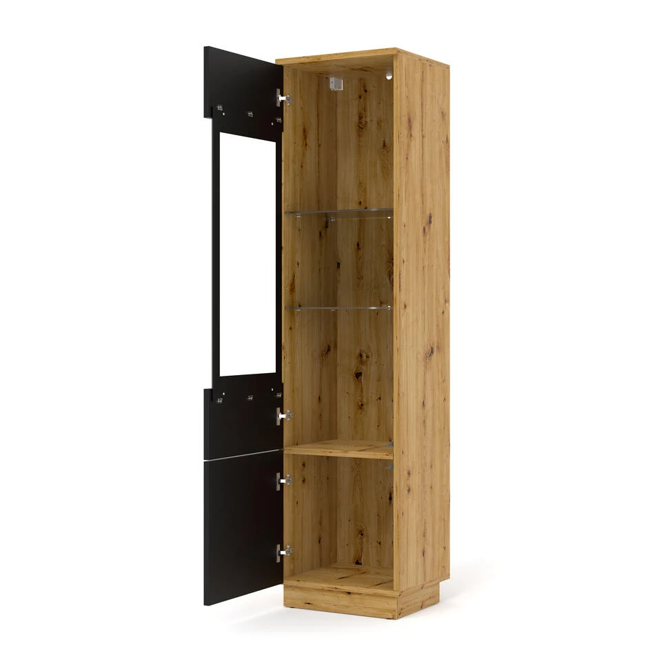 De gepresenteerde site uit de AURA-collectie is gemaakt in een moderne stijl en kleurstelling. De combinatie van houtdecor met matzwart en glas zal harmoniëren met verschillende interieuropstellingen, zoals de woonkamer en eetkamer. Een eenvoudige carrosserie, voorzien van greeploze fronten, maakt het meubel mooi en opvallend.