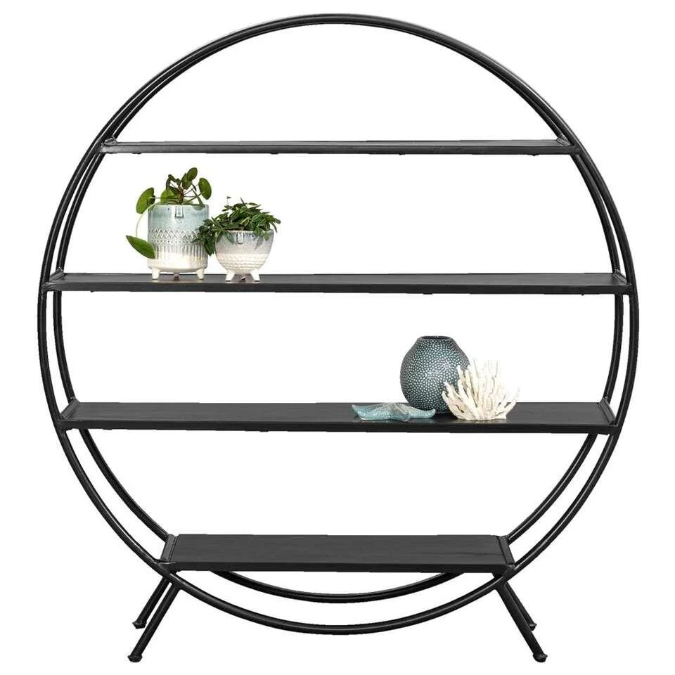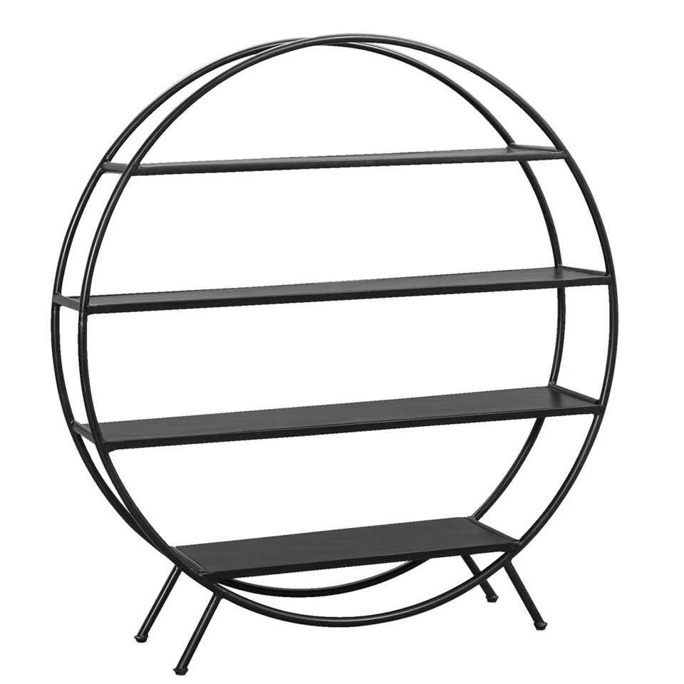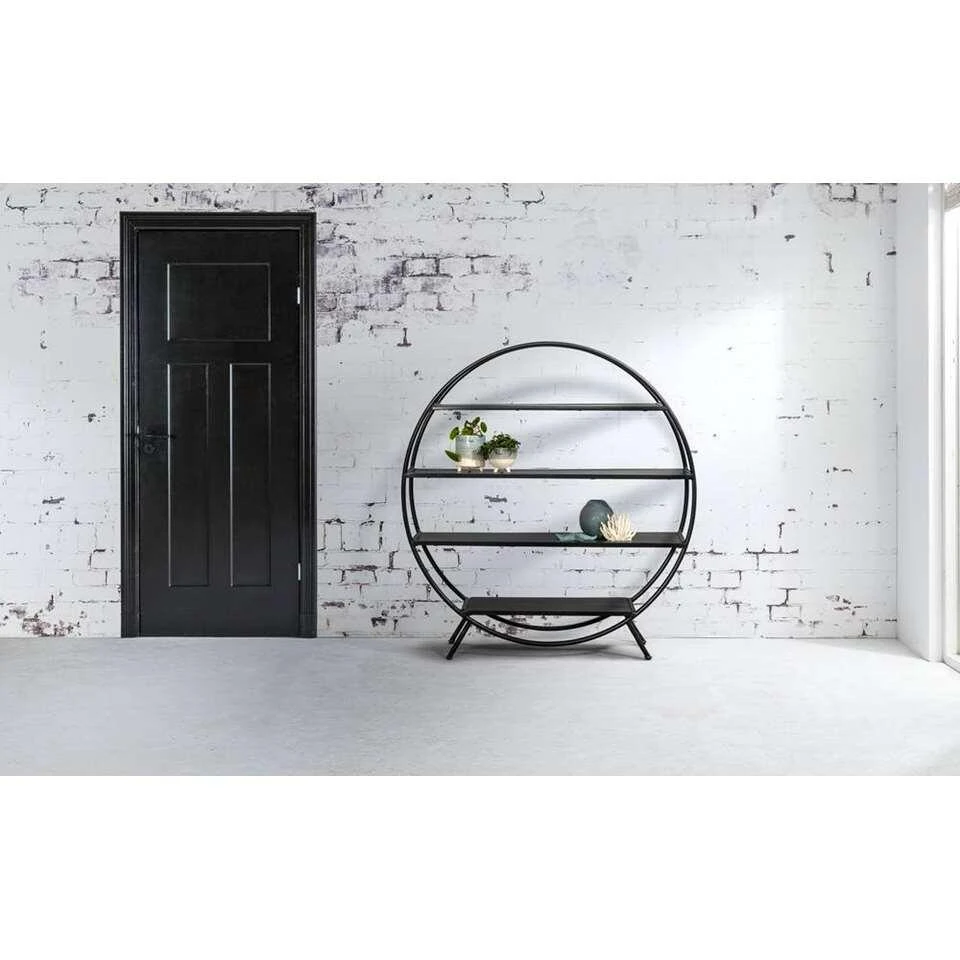 Breng een eigen unieke stijl in huis met dit stijlvolle rek Kick. Kick is rond en het frame is gemaakt van zwart metaal. De vier plankjes zijn gemaakt van hout en deze planken hebben een maximaal draagvermogen van 15 kg per plank. Zet je mooiste woonaccessoires in dit leuke en stoere rek of zet er planten in, het kan allemaal. De strakke lijnen maken het rek stijlvol, stoer en een echte must-have voor elk interieur. Dit wandmeubel heeft een totale afmeting van 140x135x32 cm.
