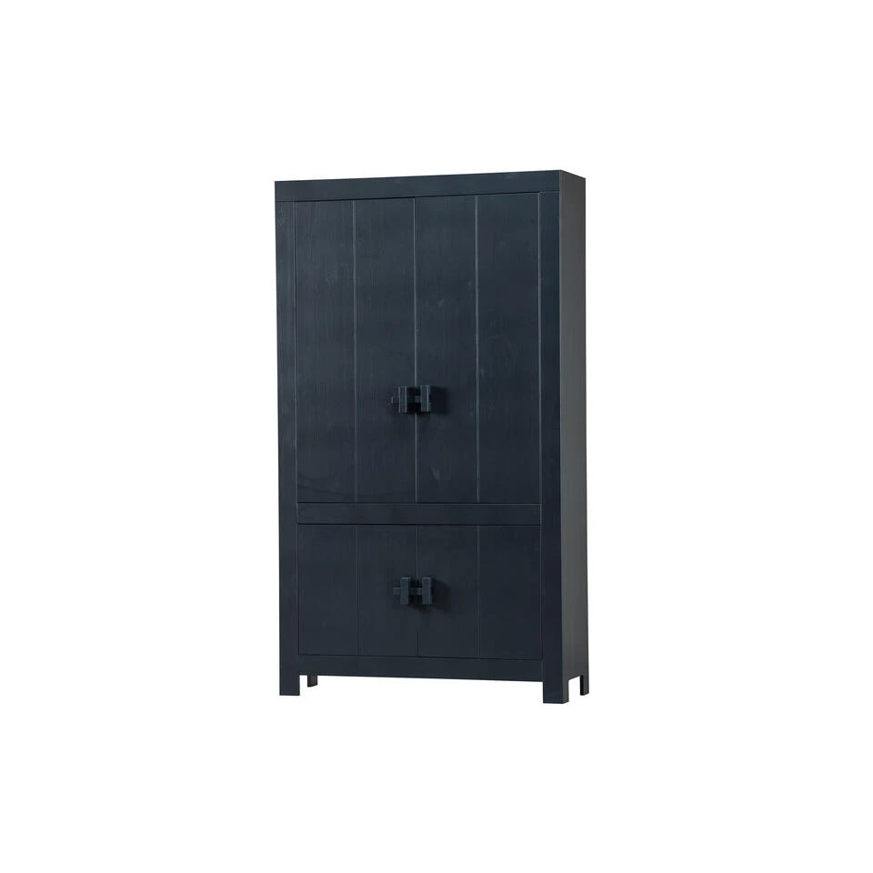 De wandkast heeft een hoogte van 200 cm, is 115 cm breed en 37 cm diep. Achter de vier deuren bevindt een zee van ruimte voor spullen die je liever uit het zicht laat. Achter de twee bovenste deuren is de ruimte ingedeeld in drie ruime vakken met sterke legplanken voor het presenteren van de mooiste accessoires. Plaats op de legplanken nooit meer dan 15 KG aan spullen en zorg dat het gewicht goed verspreid wordt.
