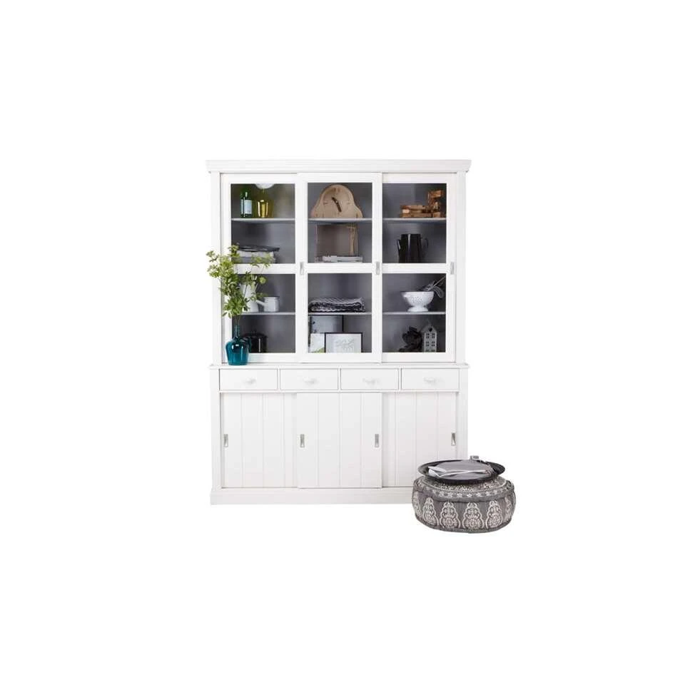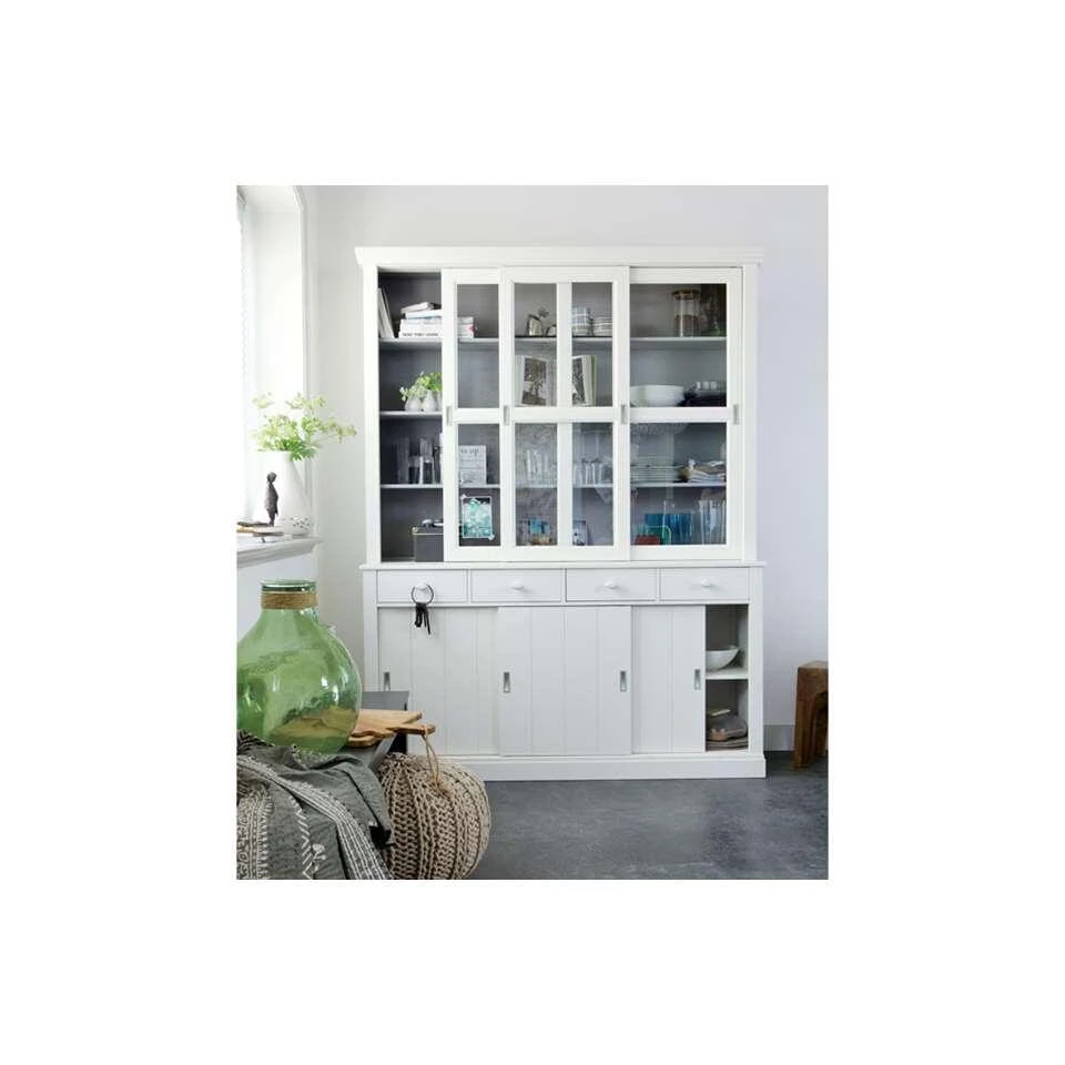 Woood buffetkast Lagos is een hele ruime kast met 4 lades, schuifdeurtjes en deurtjes met glas. Zet je mooiste servies achter de glazen deurtjes. In de lades kun je bijvoorbeeld bestek leggen en andere losse spullen. Onderin vind je ook een zee aan opbergruimte. Deze kast voelt zich thuis in een eetkamer met een landelijk stoere stijl. Deze royale kast is vervaardigd uit massief grenenhout.