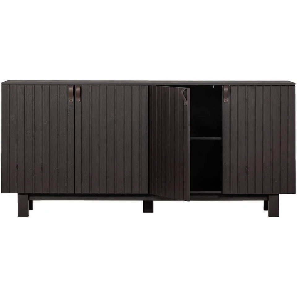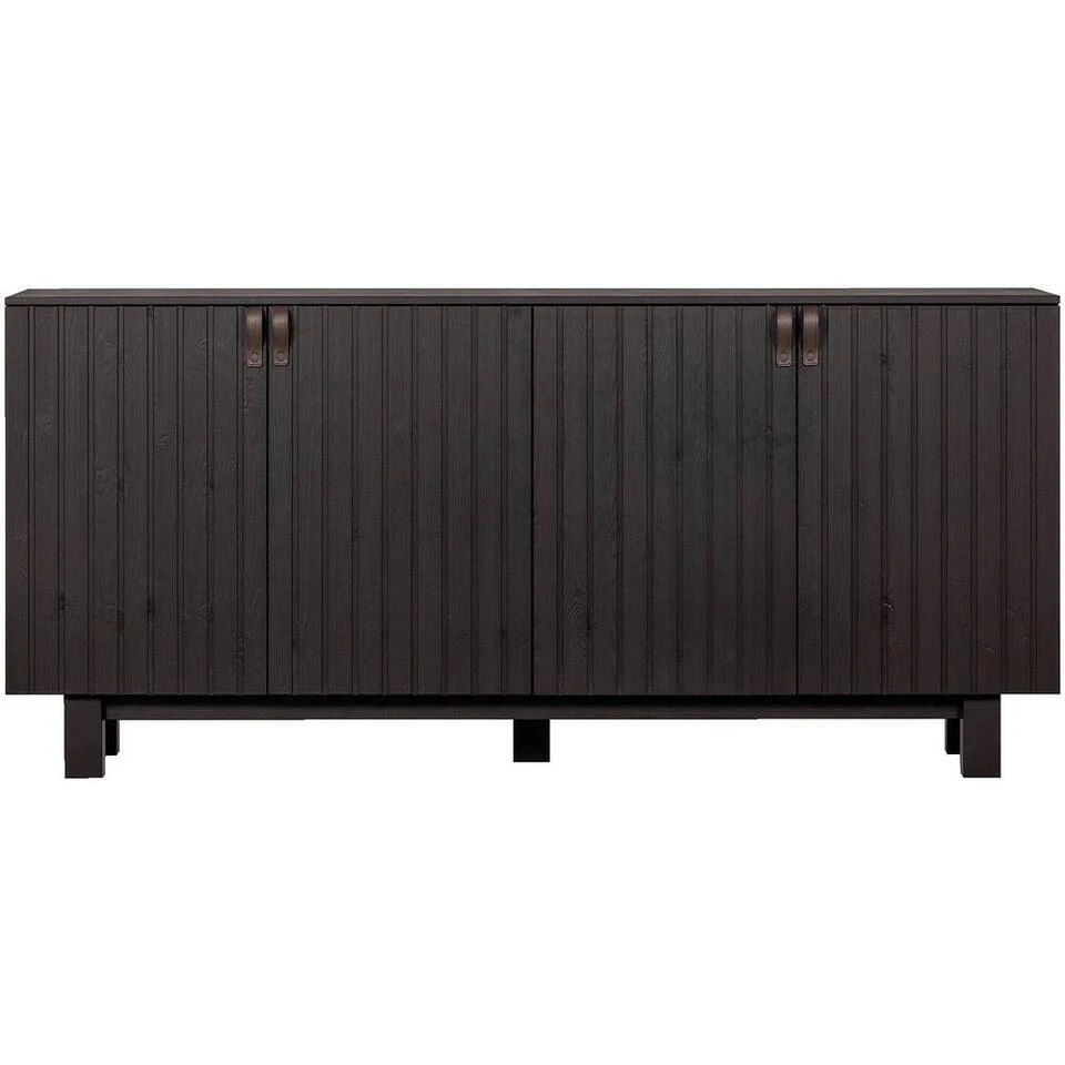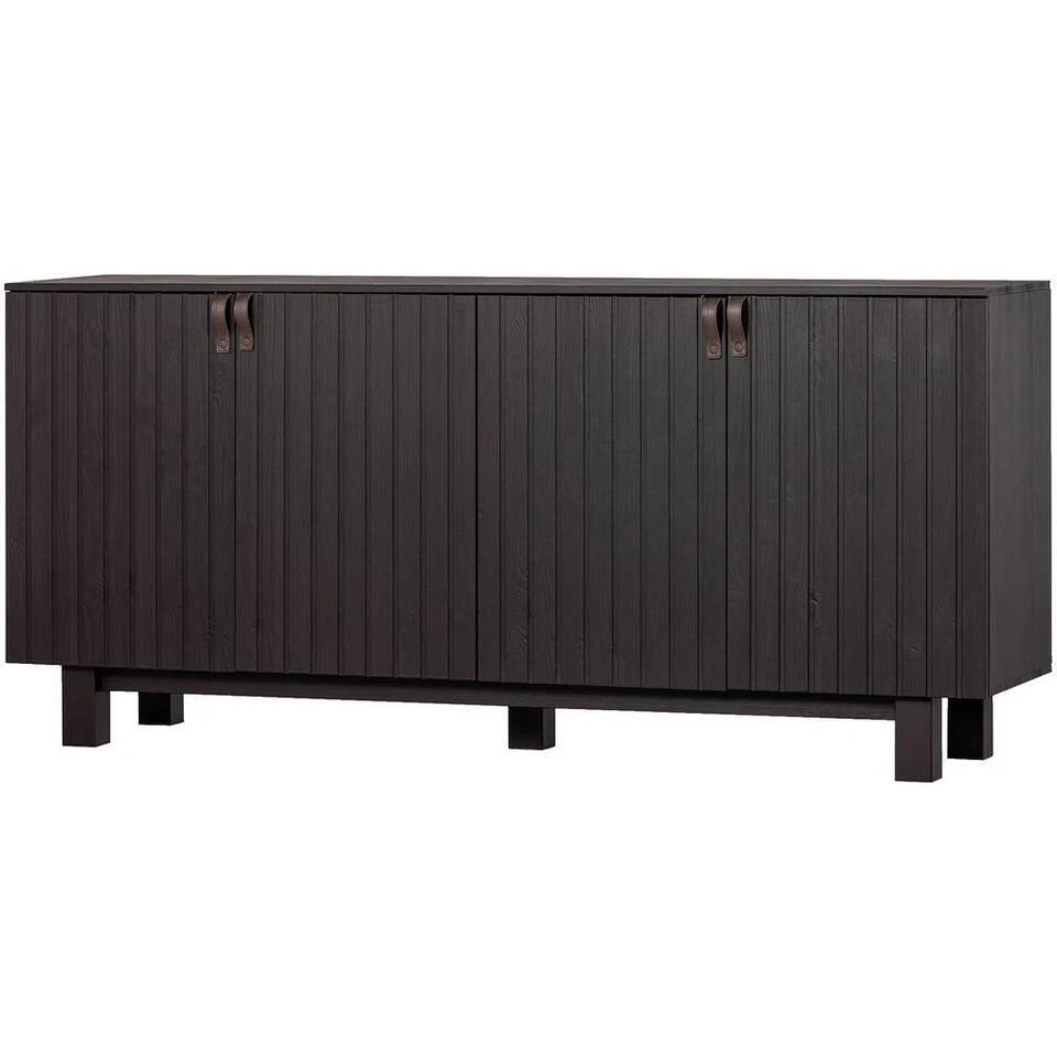 Woood dressoir Hux is gemaakt van bruinzwart gelakt grenenhout. Deze kast heeft een stoere uitstraling en een moderne look. De kast heeft een afmeting van 85x185x44 cm. Achter de deurtjes biedt deze kast voldoende ruimte voor bijvoorbeeld boeken, servies en nog veel en veel meer. Op het dressoir zet je leuke woonaccessoires zoals fotolijstjes, kandelaars of een vaas. Door zijn stoere uitstraling en het gebruik van latjes sluit hij helemaal aan bij de laatste trends!