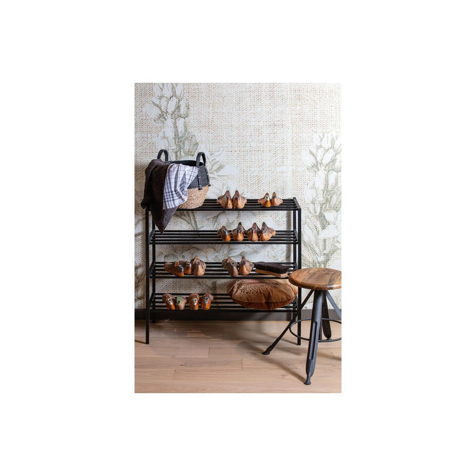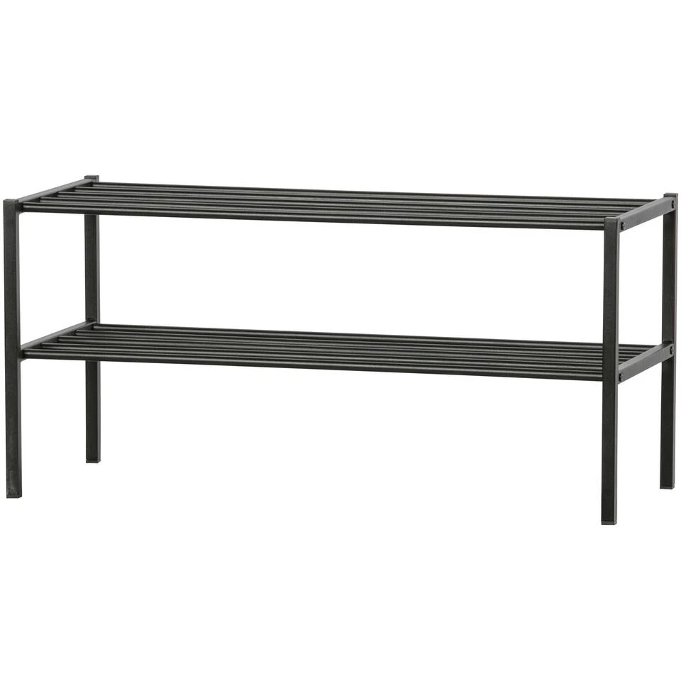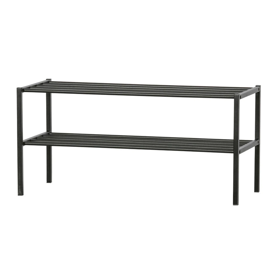 WOOOD Ferro Schoenenrek 40x85x35 (hxbxd) is een functioneel schoenenrek uit de collectie van het Nederlandse merk WOOOD. Het Ferro schoenenrek is gemaakt van ijzer en heeft een zwarte afwerking. De hoogte tussen de onderste en bovenste plank is 18 cm en het maximale draaggewicht is 15 kg. Het schoenenrek is stapelbaar, en hierdoor naar wens uit te breiden.