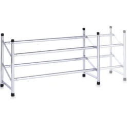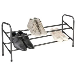 Metalen schoenenkast/schoenenrek uitschuifbaar 2-laags 64-117 cm. Een schoenenrek met 2 lagen, om uw schoenen in op te bergen op de bijvoorbeeld de camping of in de gang. Het rek is makkelijk in elkaar te zetten, wordt geleverd incl. gebruiksaanwijzing. Biedt ruimte voor ca. 6 tot 8 paar schoenen.
